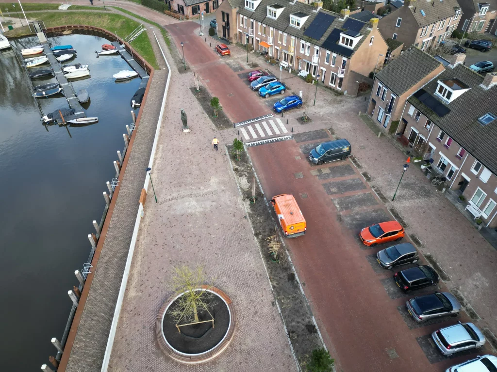 In Terheijden werken we samen met de Krom aan de herinrichting van het terrein rondom de haven. We combineren ambachtelijke en nieuwe materialen om een aantrekkelijk havenplein te realiseren, met voldoende parkeergelegenheid voor zowel buurtbewoners als havenbezoekers.